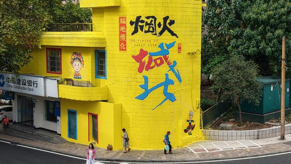 位于城北街道的涂鸦墙,已成为怀化网红“打卡点”。张卓 摄