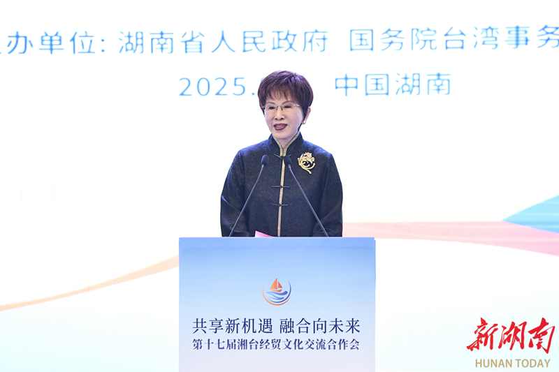 洪秀柱表示,湖南跟台湾虽相隔千里,但历史与文化让我们心手相连。湖南在抗战史上写下浓墨重彩的篇章,为中华民族抗战胜利投注了信心力量。正是有了抗战胜利,才迎来1945年台湾光复。当前湖南展现出傲人的发展成就,为湘台合作开启广阔舞台。两地在现代农业、文化创意、康养产业等领域有着广阔合作机遇。长江之水滔滔不绝,正如两岸交流的大潮,不会因为风浪而止息。两岸同胞同属中华民族、血脉相连、文化相通,更应把握时代所赋予的新契机,携手合作迎向未来。
