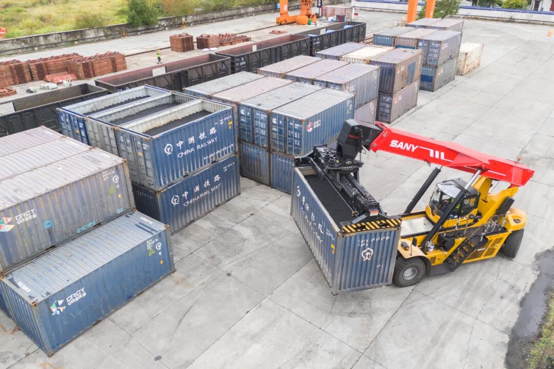 11月17日,娄底东站货场,工作人员在有序转运电煤。吴永华 摄(湖南图片库)