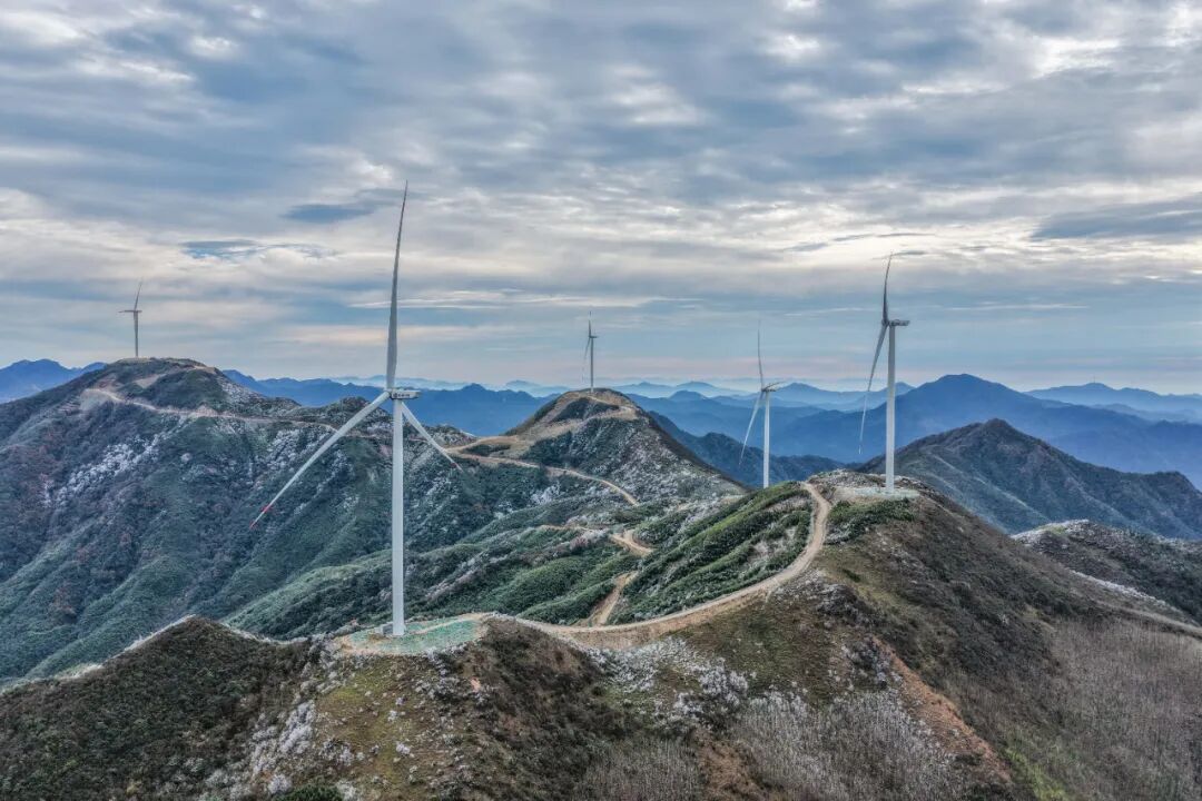 11月19日,道县洪塘营风力发电场,风力发电机组迎风运转。蒋克青 摄(湖南图片库)