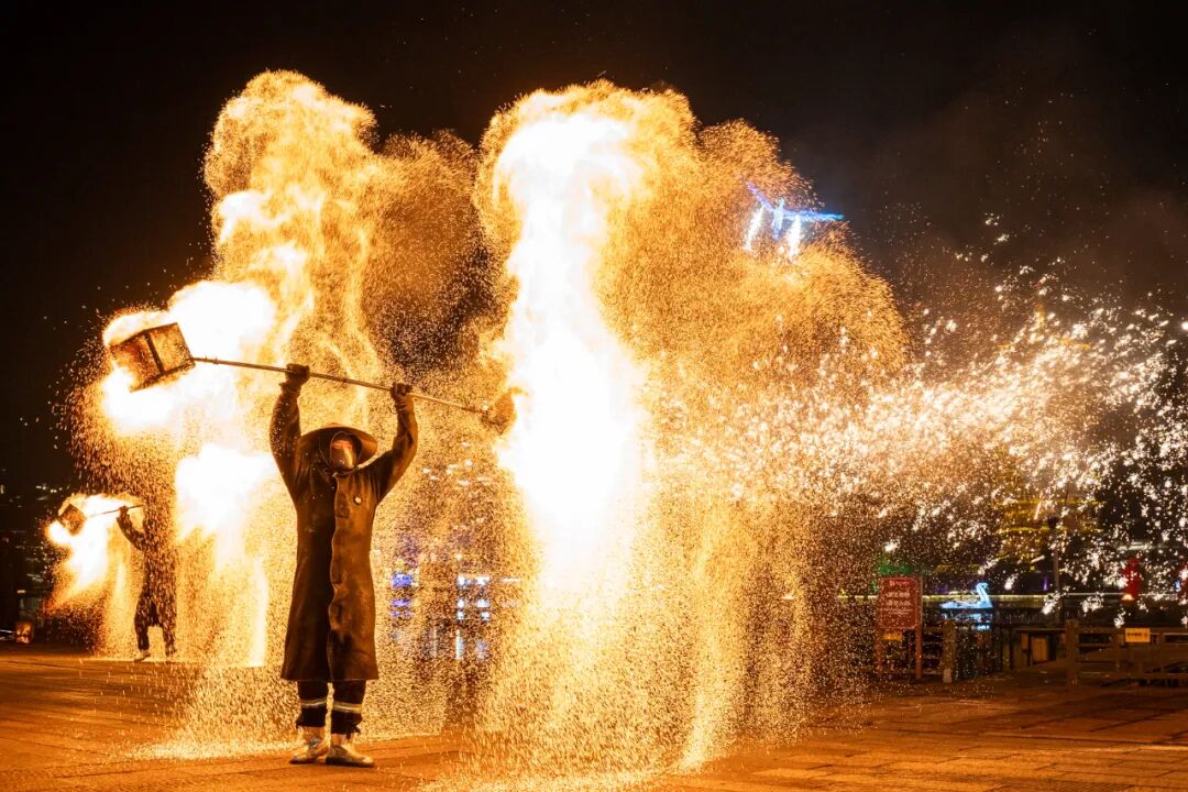 铁花如星雨,在长沙窑火的映照中,绽放文化融合的浪漫。