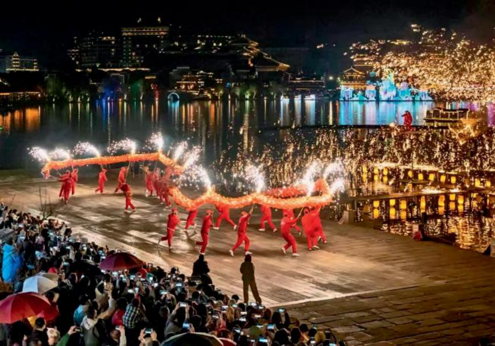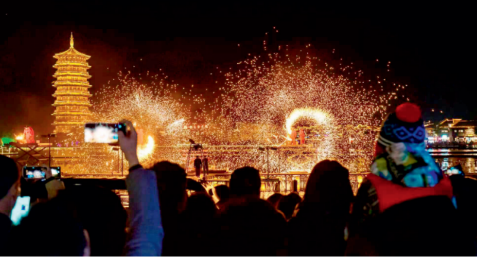 漫天飞舞的铁花,比窑火更炽烈,映红了石渚码头的衣肩,照亮了唐人的榫卯,陶醉了天上的星星。仿佛告诉远方的来客:唐人回家的码头,不再是茅檐低矮的模样。