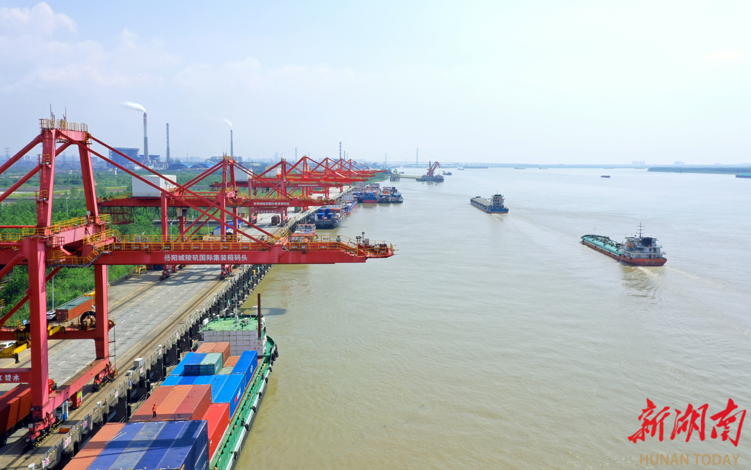 (6月30日,繁忙的岳阳城陵矶新港码头。湖南日报全媒体记者 易昂 摄)