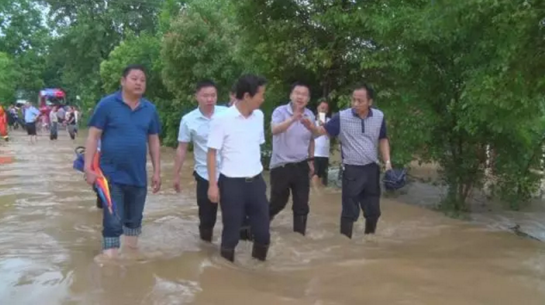 6月23日下午5点左右,津市市政协副主席董新满(右一)前往临东村另外一个营救点救助被困人员。