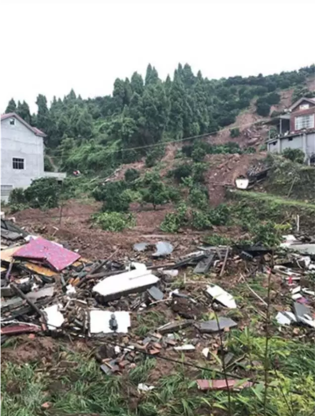 泥石流摧毁民居。