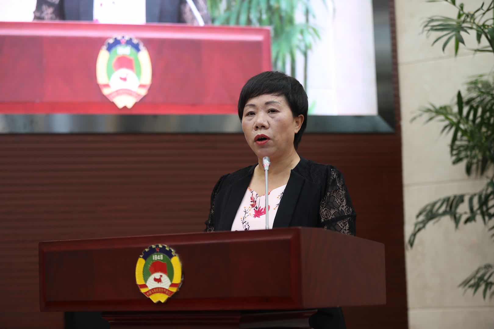 省政协常委、省民政厅副厅长陈慈英作《聚焦特殊困难群体巩固脱贫攻坚成效》的发言。
